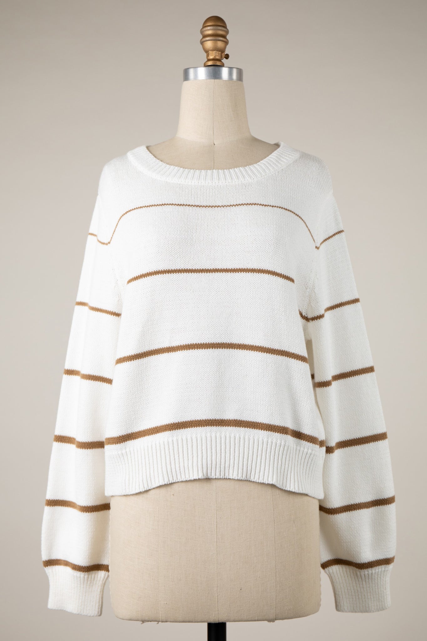 STRIPED LIGHTWEIGHT CROPPED KNIT SWEATER TOP 60% COTTON 40% POLYESTER