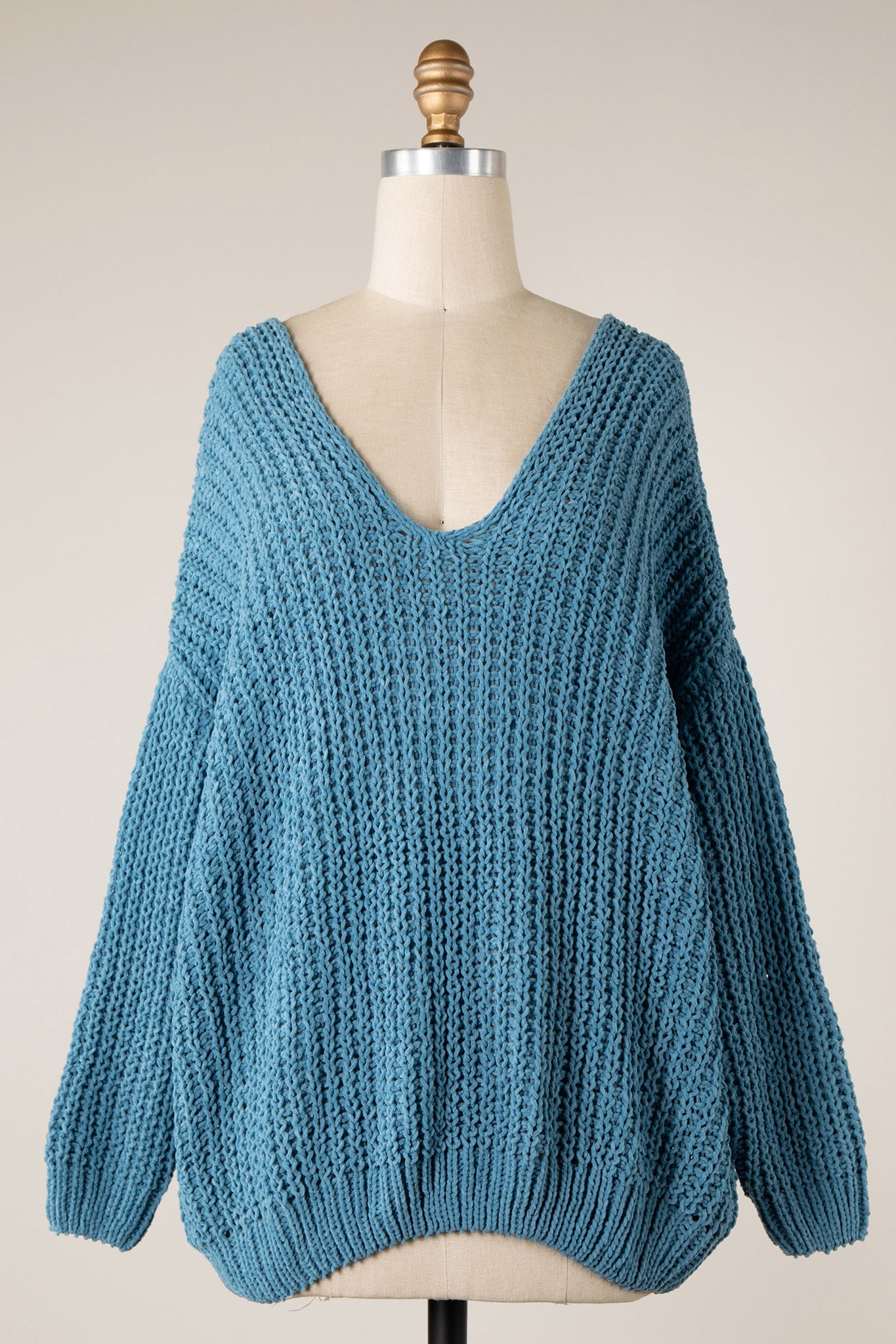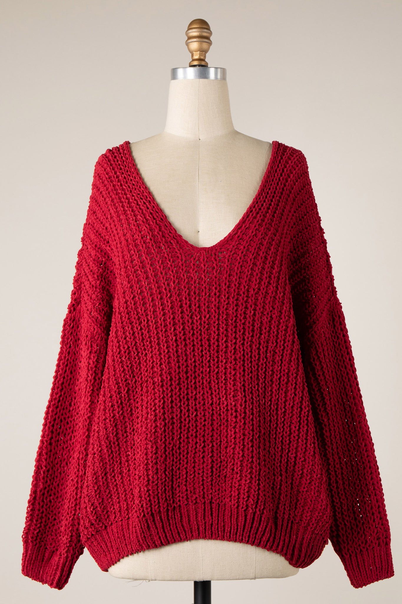 Long sleeve v-neck oversized open cable knit chenille sweater